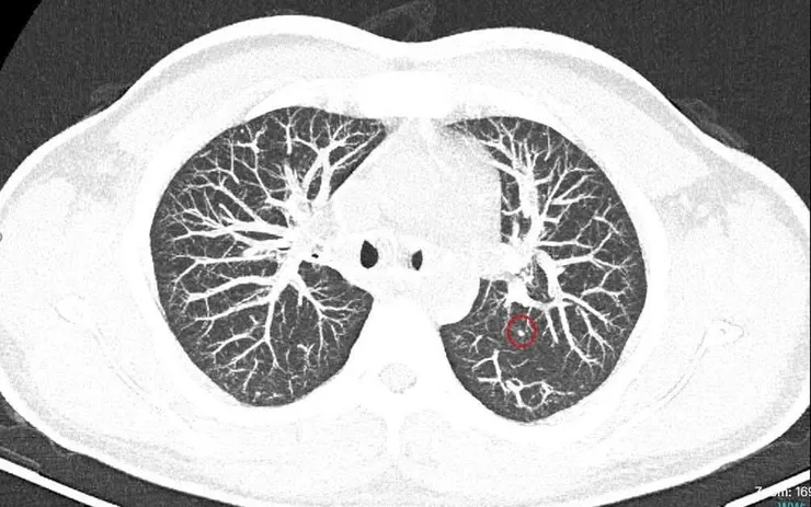 Ngay sau đó, bệnh nhân được chỉ định chụp cắt lớp vi tính (CT) ngực, qua đó phát hiện nhiều nốt tại phổi nghi ngờ tổn thương di căn xa.