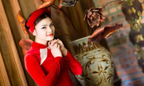 Trong tà áo dài đỏ, Phạm Phương Thảo đẹp dịu dàng, đằm thắm