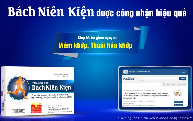 Đặc biệt, năm 2024, báo cáo nghiên cứu lâm sàng của Bách Niên Kiện đã được đăng tải thành công trên Thư viện Y khoa Hoa Kỳ (PubMed) – cơ sở dữ liệu y học uy tín hàng đầu thế giới. Đây là một cột mốc quan trọng, giúp Bách Niên Kiện trở thành một trong số ít sản phẩm hỗ trợ xương khớp của Việt Nam được quốc tế ghi nhận về hiệu quả và độ an toàn.