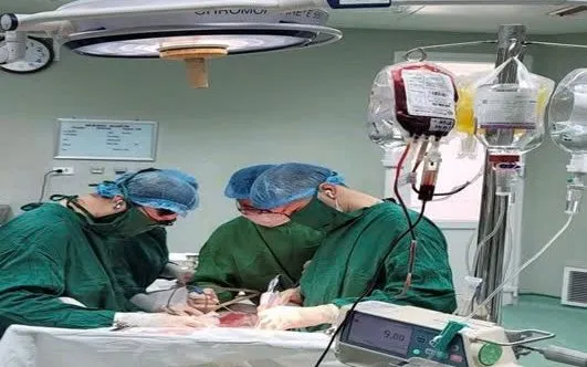 Ngay khi nhận thông tin, bệnh viện tuyến cuối đã chủ động huy động phẫu thuật viên, chuẩn bị phòng mổ và dự trữ sẵn 10 đơn vị máu cùng chế phẩm máu. Khi nhập viện, bệnh nhân trong tình trạng đặc biệt nguy kịch, huyết áp chỉ 65/40 mmHg dù đã dùng thuốc vận mạch liều cao, máu tiếp tục chảy qua vết mổ.