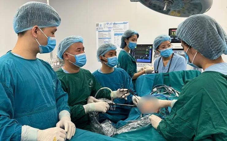 Với chẩn đoán viêm phúc mạc nghi do viêm ruột thừa, các bác sĩ quyết định mổ cấp cứu. Trong quá trình phẫu thuật nội soi, ekip phát hiện nhiều dịch tiêu hóa trong ổ bụng, ruột thừa chỉ xung huyết nhẹ, không có dấu hiệu viêm. Khi thăm dò vùng dạ dày - tá tràng, các bác sĩ phát hiện một lỗ thủng nhỏ khoảng 0,5 cm ở mặt trước hành tá tràng, xung quanh phù nề, có giả mạc che phủ một phần. Ekip đã khâu kín lỗ thủng bằng nội soi, rửa sạch ổ bụng và đặt dẫn lưu.