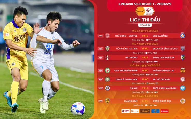 Như đã nói ở trên, tâm điểm chú ý tại vòng 21 sẽ là cuộc đối đầu tại sân Hàng Đẫy giữa Hà Nội FC (37đ, tạm xếp thứ 2) – thế lực số 1 của "kỷ nguyên V.League" suốt 25 năm qua (cũng như suốt 45 năm của giải VĐQG) – với đội đương kim vô địch Thép Xanh Nam Định (39đ, đang dẫn đầu bảng). Tuy "nóng máy" tương đối chậm, nhưng HNFC đã trở lại kịp thời, đặc biệt là từ khi được dẫn dắt bởi tân HLV trưởng Makoto, đại biểu bóng đá Thủ đô đã chơi rất ổn định, qua đó tìm lại động lực đua tranh chức vô địch. Đối thủ của họ – TXNĐ – càng đang hừng hực khí thế quyết tâm bảo vệ "ngôi vương". Họ cũng từng trải qua những ngày khó khăn khi không có sự phục vụ của bộ đôi "sát thủ" Xuân Son – Văn Toàn vì chấn thương. Nhưng thầy trò HLV Vũ Hồng Việt đã từng bước vượt qua thử thách (nhất là khi các đối thủ khác cũng không có sự ổn định), tái chiếm ngôi đầu. Phong độ cao của Văn Toàn ngay sau khi trở lại càng tiếp thêm động lực cho đội bóng thành Nam trong giai đoạn quyết định. Việc CLB thông báo sẽ tổ chức cả đoàn xe cho các CĐV lên Hà Nội cổ vũ trận đấu (được ví von như "chung kết sớm") càng khiến cho bầu không khí trước trận đại chiến thêm nóng bỏng. Nếu thắng trận này, HNFC sẽ không chỉ đòi lại "món nợ" ở lượt đi (thua 1-2) mà còn giành luôn ngôi nhất bảng tạm thời. Ngược lại, nếu thắng, TXNĐ sẽ nới rộng khoảng cách lên tới 5 điểm với đối thủ cạnh tranh trực tiếp để mở toảng cánh cửa tói ngôi vô địch. Quá đỗi gay cấn, hấp dẫn và thật sự khó lường! Trận cầu tâm điểm này cũng sẽ được điều hành bởi Trọng tài chính và Trọng tài VAR là Trọng tài FIFA Malaysia. Đây là trận đấu thứ 4 tại LPBank V.League 1-2024/25 được BTC mời Trọng tài nước ngoài điều hành.