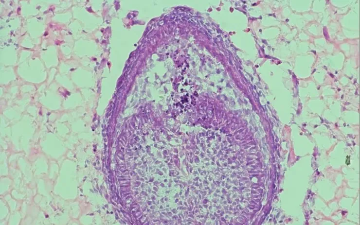 Mẫu lát nhuộm của mô răng được nuôi cấy trong phòng thí nghiệm tại Đại học King’s College London. Ảnh: CNN