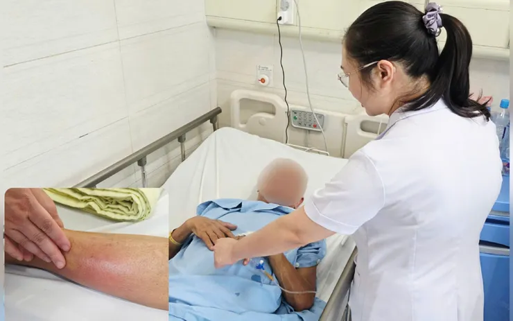 Do có bệnh nền tăng huyết áp, đái tháo đường và rối loạn đông máu, người bệnh được chuyển đến Khoa Da liễu - Bỏng, Bệnh viện Bạch Mai để xử trí. Khi nhập viện, vùng mông hai bên sưng đỏ, ấn chắc, đau dữ dội, sốt cao và nhịp tim nhanh.