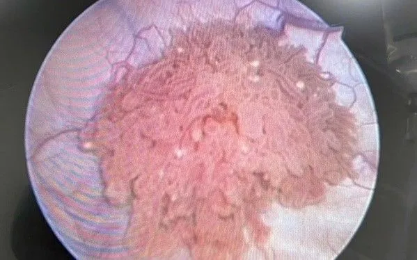 Kết quả soi bàng quang và chụp MRI cho thấy một khối u nhú thành bên phải bàng quang, kích thước khoảng 1 cm. Sau hội chẩn, các bác sĩ chỉ định phẫu thuật nội soi bóc gọn u và chân u bằng laser Holmium. Thời gian mổ chỉ 10 phút, bệnh phẩm giải phẫu bệnh cho kết quả: ung thư biểu mô đường niệu thể nhú độ thấp.
