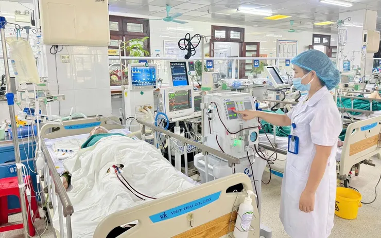 Ngày hôm sau, kết quả xét nghiệm cho thấy men gan tăng hơn 40 lần và chỉ số CK trong máu tăng gấp 160 lần so với bình thường - biểu hiện rõ tình trạng tiêu cơ vân cấp và suy đa tạng tiến triển, tiên lượng rất nặng. Bệnh nhân được chỉ định lọc máu hấp phụ kết hợp lọc máu liên tục để loại bỏ độc chất và hỗ trợ chức năng các cơ quan.