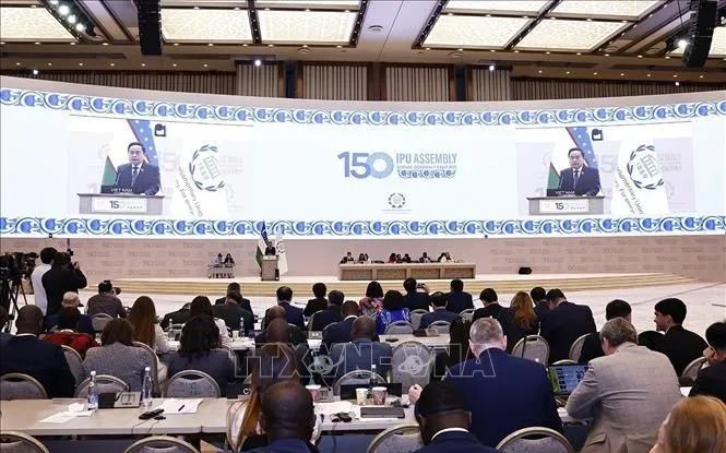Sáng 6/4 theo giờ địa phương, tại thủ đô Tashkent, Uzbekistan, Chủ tịch Quốc hội Trần Thanh Mẫn đã có bài phát biểu quan trọng tại Phiên toàn thể cấp cao Đại hội đồng Liên minh Nghị viện thế giới lần thứ 150 (IPU-150).