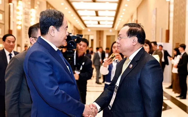Sáng 6/4, trong khuôn khổ Đại hội đồng lần thứ 150 của Liên minh Nghị viện thế giới (IPU-150) tại Uzbekistan, Chủ tịch Quốc hội Trần Thanh Mẫn đã tiếp Chủ nhiệm Ủy ban Đối ngoại Quốc hội Lào Sanya Praseuth.
