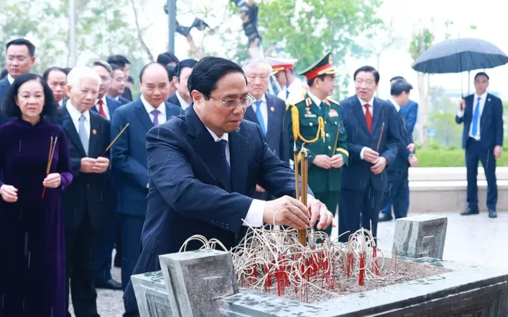 Thủ tướng Phạm Minh Chính dâng hoa tri ân các Anh hùng liệt sĩ. Ảnh: TTXVN