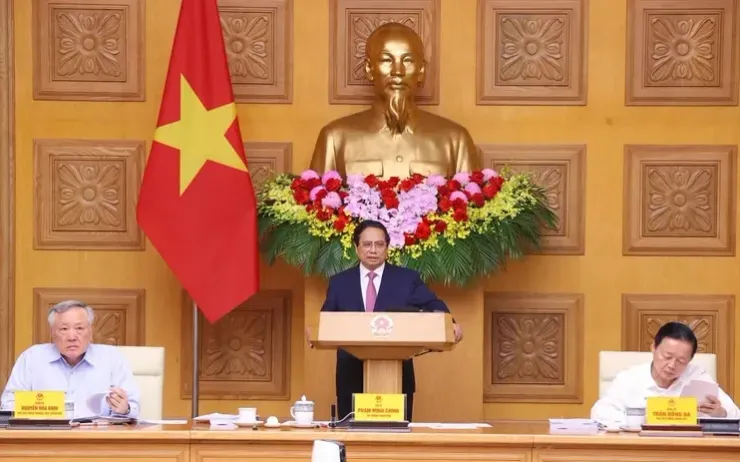 Thủ tướng Phạm Minh Chính phát biểu chỉ đạo phiên họp. (Ảnh: TTXVN)