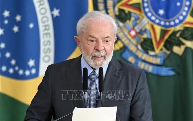 Tổng thống Brazil Luiz Inacio Lula da Silva phát biểu tại cuộc họp ở Brasilia. Ảnh: AFP/TTXVN