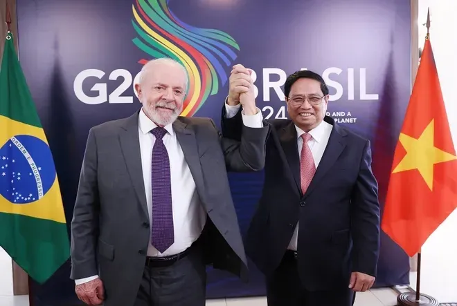 1. Ngài Phạm Minh Chính, Thủ tướng Chính phủ nước Cộng hòa xã hội chủ nghĩa Việt Nam và Ngài Luiz Inácio Lula da Silva, Tổng thống Cộng hòa Liên bang Brazil, đã có cuộc gặp tại Rio de Janeiro vào ngày 17/11/2024, bên lề Hội nghị thượng đỉnh G20.