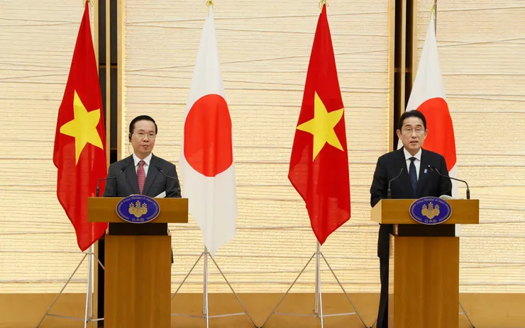 7. Thủ tướng Kishida Fumio khẳng định tầm quan trọng của Việt Nam trong việc triển khai chính sách đối ngoại của Nhật Bản ở khu vực Ấn Độ Dương - Thái Bình Dương và đánh giá cao những đóng góp tích cực và xây dựng của Việt Nam đối với các vấn đề quốc tế và khu vực. Chủ tịch nước Võ Văn Thưởng khẳng định Việt Nam luôn coi Nhật Bản là một trong những đối tác quan trọng hàng đầu và lâu dài, và bày tỏ mong muốn Nhật Bản sẽ tiếp tục phát huy vai trò quan trọng hàng đầu trong việc duy trì hòa bình, ổn định, hợp tác và phát triển ở khu vực và trên thế giới. Hai nhà lãnh đạo cho rằng quy mô hợp tác song phương đã được mở rộng, đóng góp vào hoà bình và thịnh vượng không chỉ cho đất nước và nhân dân hai nước, mà còn của khu vực châu Á và trên thế giới.