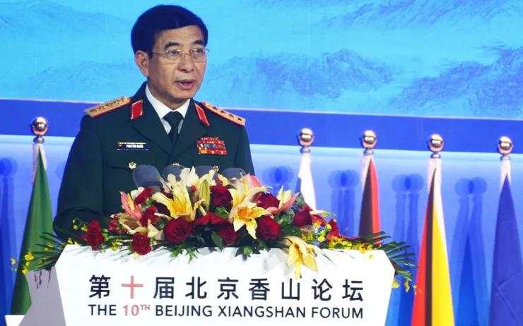 Đại tướng Phan Văn Giang, Bộ trưởng Quốc phòng phát biểu tại Diễn đàn Hương Sơn Bắc Kinh lần thứ 10. Ảnh: Mạnh Cường – PV TTXVN tại Trung Quốc