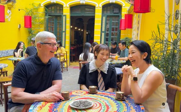 Trên mạng xã hội X, ông Tim Cook, CEO Apple vừa đăng bức ảnh mới nhất ở Việt Nam cùng ca sỹ Mỹ Linh và con gái, ca sỹ Mỹ Anh với dòng trạng thái: "Xin chào Việt Nam! Xin cảm ơn những nghệ sỹ tài năng Mỹ Linh và Mỹ Anh vì sự chào đón nồng nhiệt. Và tôi yêu món cà phê trứng!".