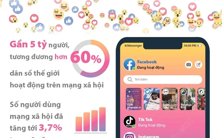 Theo Kepios, số người dùng mạng xã hội đã tăng tới 3,7% trong một năm qua. Tuy nhiên, có sự chênh lệch về tỷ lệ sử dụng giữa các khu vực. Ở Đông và Trung Phi, tỷ lệ hoạt động trên mạng xã hội chiếm 9%, trong khi ở Ấn Độ, hiện là quốc gia đông dân nhất thế giới, tỷ lệ sử dụng mạng xã hội là 33%.