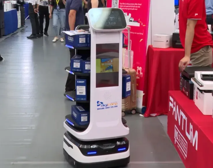 Robot tích hợp nhiều công nghệ tự động được doanh nghiệp mang đến tại triển lãm.