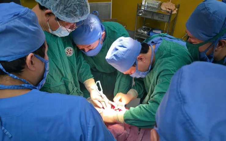 Bệnh nhi được chụp CT dựng hình 3D để xác định chính xác đường đi của dị vật, đồng thời tiến hành hội chẩn liên chuyên khoa. Ca phẫu thuật được triển khai khẩn trương dưới gây mê nội khí quản, với sự phối hợp của các chuyên khoa Nhãn, Ngoại, Gây mê hồi sức và Chẩn đoán hình ảnh.