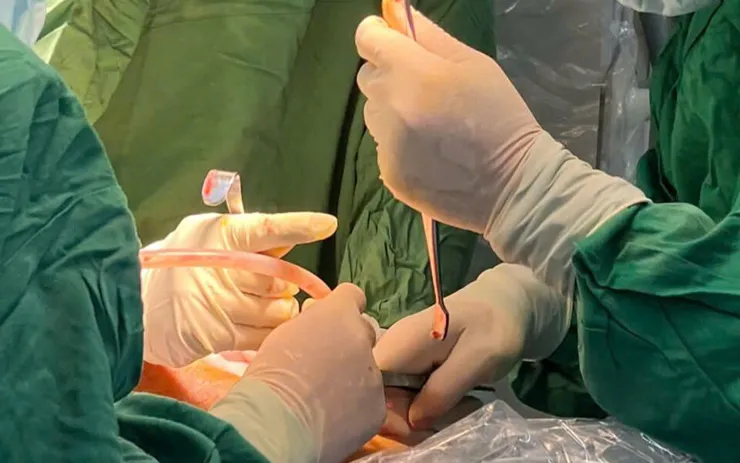 Sau 7 ngày điều trị tích cực nhằm kiểm soát nhiễm trùng, cải thiện suy hô hấp và ổn định tình trạng toàn thân, ekip quyết định tiến hành phẫu thuật kết hợp xương đùi phải theo nguyện vọng gia đình. Ca mổ diễn ra thành công, tuy nhiên giai đoạn hậu phẫu xuất hiện nhiều biến chứng nặng như sốc mất máu, rối loạn đông máu và suy gan cấp.