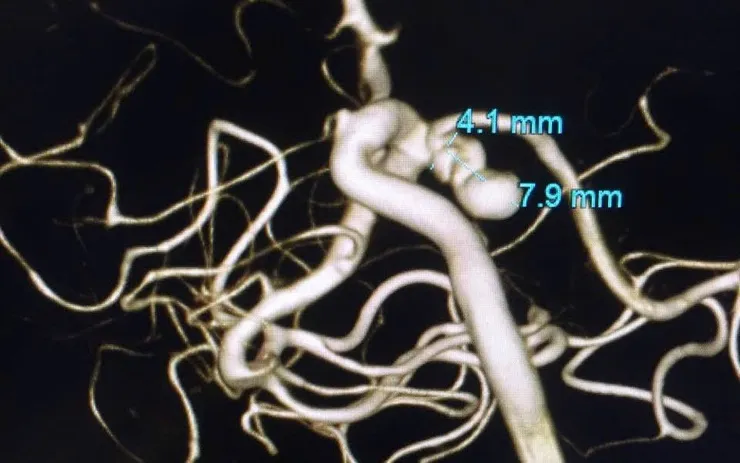 Bệnh nhân L.T.N. (39 tuổi, trú tại tỉnh Thanh Hóa) nhập viện trong tình trạng đau đầu âm ỉ kéo dài nửa đầu trái, kèm chóng mặt, buồn nôn. Qua thăm khám và chụp cộng hưởng từ (MRI) sọ não, các bác sĩ phát hiện túi phình động mạch cảnh trong bên phải kích thước lớn.