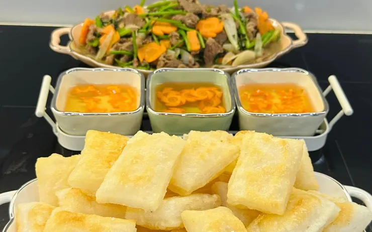 Phần bò xào đã có nước sốt rồi nên nếu sợ ngấy thì làm thêm phần nước chấm chua ngọt
