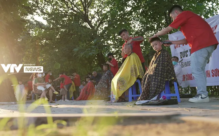 Ngoài thời gian bận rộn làm nghề và đào tạo học viên, anh Thịnh cùng các đồng đội duy trì việc cắt tóc miễn phí cho người dân.