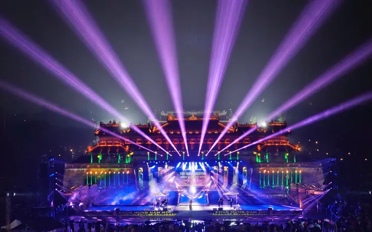 Tâm điểm của Đêm Giao thừa tại Huế là chương trình nghệ thuật tại quảng trường Ngọ Môn (Đại Nội Huế). Sân khấu lớn sáng đèn với các màn trình diễn âm nhạc và múa truyền thống, xen kẽ là những hiệu ứng ánh sáng hoành tráng. Sự kiện này không chỉ là không gian giải trí mà còn là dịp để tôn vinh nét đẹp văn hóa Cố đô.