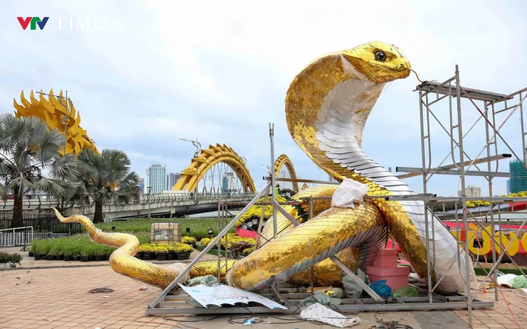 Từ sáng 14/1, nhiều người đi đường trầm trồ khi linh vật rắn tại Đà Nẵng đang được lắp đặt tại đường hoa xuân Đà Nẵng 2025.
