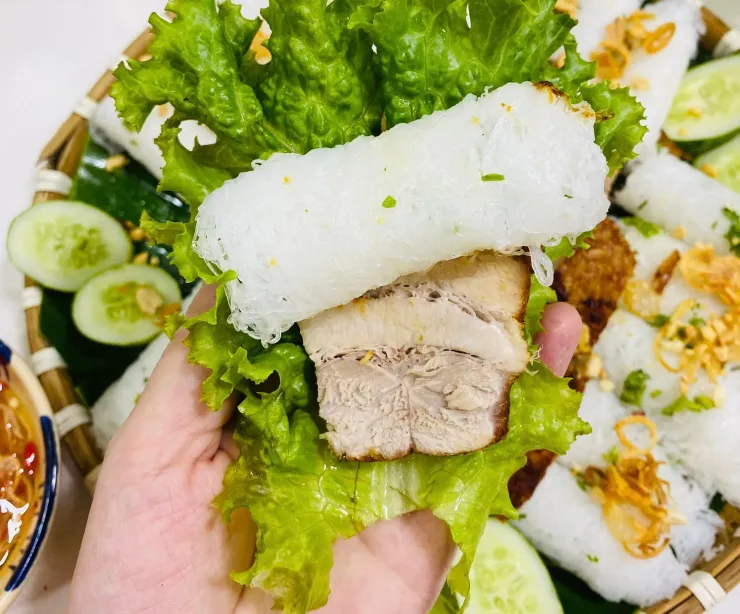 - Món ngon là bát nước mắm chấm, nước mắm chua ngọt cũng đầy đủ tỏi ớt băm nhuyễn, đường chanh, thêm đồ chua cà rốt củ cải ngon hết sẩy.