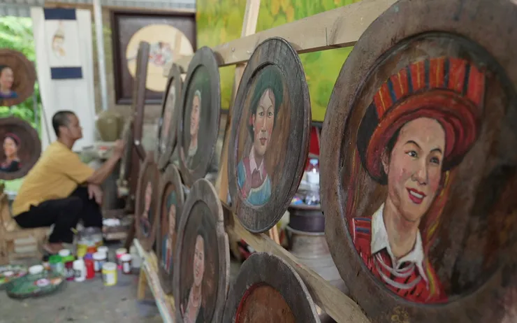 Họa sĩ Hoàng Trọng Tuyển (SN 1985, trú tại xã Thiệu Vân, TP Thanh Hóa) không chỉ được biết đến là "ông đồ" viết chữ thư pháp, anh còn được yêu thích bởi những bức tranh vẽ trên mâm gỗ xưa rất độc đáo. Anh Tuyển từng là sinh viên ngành sơn mài truyền thống của Đại học Mỹ thuật Huế. Với tình yêu văn hóa truyền thống, khi ra trường, anh thường ngồi ở các chợ hoa để viết thư pháp cho người dân vào dịp Tết. Vô tình bắt gặp chiếc mâm gỗ mộc mạc, anh đã có ý tưởng vẽ tranh trên chất liệu này. Trước đó, anh đã yêu thích những vật có dạng tròn và tin rằng các tác phẩm trên hình tròn mang một sức hút đặc biệt.