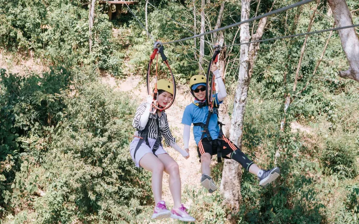 Khi trượt trên cáp treo, du khách như được bay lượn trên bầu trời qua những tán cây trong rừng, ngắm nhìn trọn vẹn vẻ đẹp của Hòn Bà và tận hưởng sự tươi mát trong khu rừng nhiệt đới. Đặc biệt, với mục tiêu phát triển du lịch bền vững, toàn bộ hệ thống zipline được lắp đặt ở trên cây nhưng không đóng một chiếc đinh nào vào thân cây. Thậm chí cứ mỗi 6 tháng, các chuyên gia nước ngoài lại sang đánh giá và nới rộng dây neo cho cây phát triển.