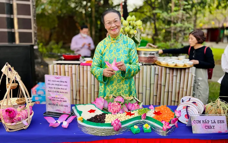 Nghệ nhân ẩm thực Hồ Đắc Thiếu Anh quảng diễn món Cơm hấp lá sen