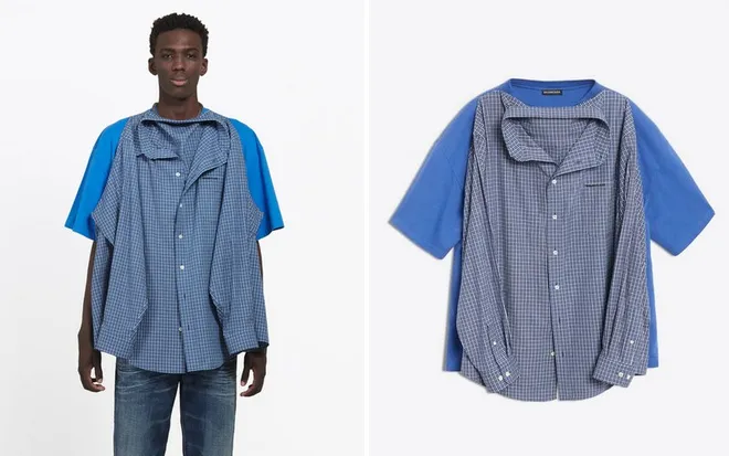 Đó là chiếc áo T-Shirt shirt (tạm dịch là áo sơ mi - phông), được miêu tả là "áo phông cộc tay kiêm sơ mi dài tay với 2 cách mặc". Có nghĩa là bạn có thể mặc áo phông rồi treo sơ mi lơ lửng trước ngực và ngược lại. Áo "sơ mi - phông" (T-shirt shirt) của hãng này gây chú ý với kiểu thiết kế "chắp vá" từ hai chiếc áo riêng biệt. Theo website của hãng thì sản phẩm được rao bán với giá hơn 1.290 USD (tương đương 29,5 triệu đồng).