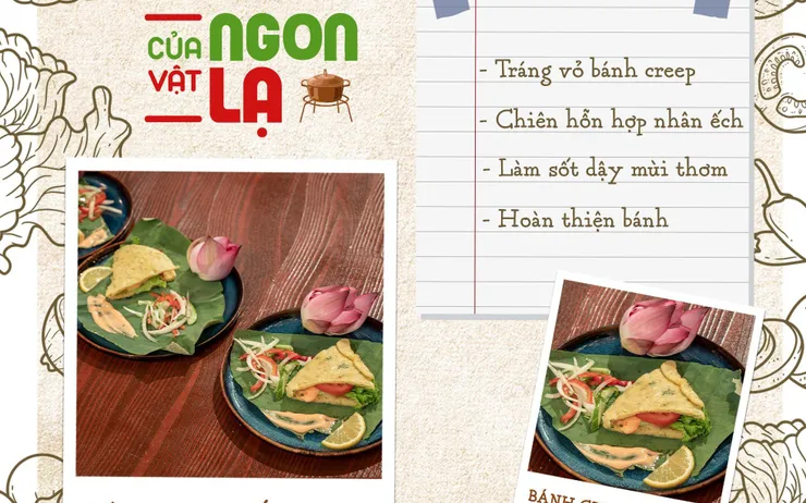 Ăn nóng để thưởng thức độ ngon nhất của bánh món bánh creep ếch viên. Món creep ếch với sự kết hợp đầy đủ dinh dưỡng tinh bột, chất sơ, đạm là một bữa ăn nhanh vừa ngon lại đảm bảo sức khoẻ mà lại chế biến rất dễ dàng và phù hợp với tất cả mọi thành viên trong gia đình.