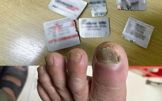 Theo người bệnh, khoảng 4 ngày trước khi vào viện, ngón chân cái bên trái bắt đầu sưng đau nên đã tự mua thuốc về sử dụng. Sau 4 ngày dùng thuốc tại nhà, dù triệu chứng đau giảm nhưng ngón chân vẫn còn sưng và xuất hiện dấu hiệu hóa mủ, người bệnh mới đến khám.