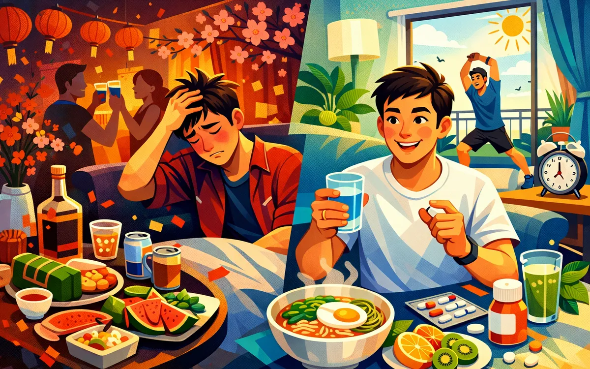 VTV.vn - Bạn có từng trải qua cảm giác “vui quá chén” ngày Tết rồi sáng hôm sau tỉnh dậy với đầu nặng như đeo đá, miệng khô, dạ dày cồn cào, người uể oải chỉ muốn nằm im?