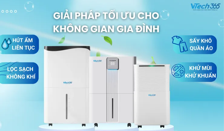 Máy hút ẩm VTech365 VT-HA500-W kiểm soát độ ẩm vượt trội trong không gian lớn.