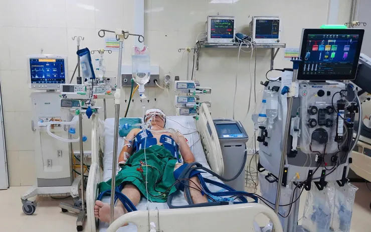 Song song, người bệnh được hồi sức tích cực bằng thở máy và lọc máu liên tục nhằm kiểm soát suy đa tạng. Nhờ chiến lược điều trị toàn diện, sau 40 ngày, người bệnh tỉnh táo, tự đi lại, ăn uống bình thường.
