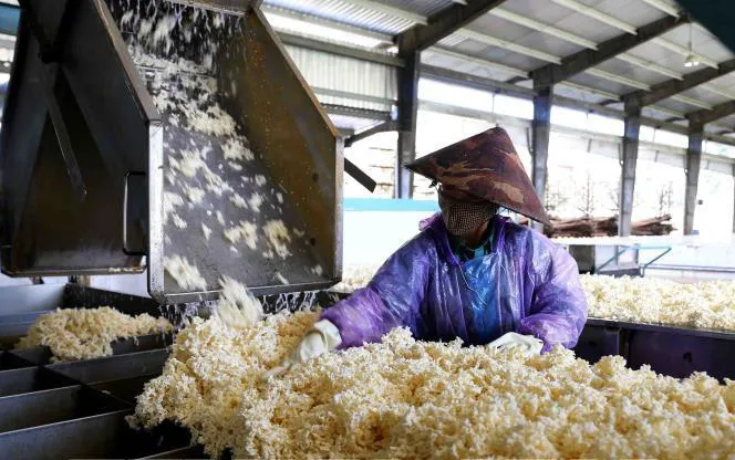 Chế biến mủ cao su xuất khẩu tại nhà máy của Công ty TNHH Một thành viên Cao su Chư Păh (tỉnh Gia Lai). Ảnh: Vũ Sinh