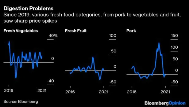 Kể từ năm 2019, giá các mặt loại thực phẩm từ thịt lợn cho đến rau củ tại Trung Quốc đều tăng chóng mặt.