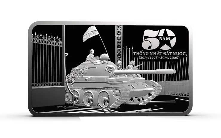 Hình ảnh trên bạc thỏi được khắc họa từ bức ảnh nổi tiếng "Xe tăng Quân Giải phóng tiến vào Dinh Độc Lập", do nhà báo Trần Mai Hưởng (Thông tấn xã Việt Nam) chụp vào trưa ngày 30/4/1975. Đây là một trong những khoảnh khắc biểu tượng của chiến thắng vĩ đại, khắc ghi dấu ấn lịch sử hào hùng của dân tộc Việt Nam.