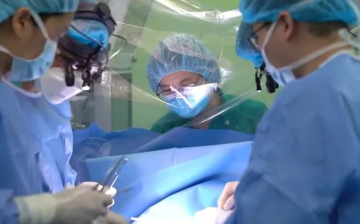 Để tiếp cận chính xác vùng tổn thương mà không gây biến dạng lồng ngực cho trẻ, ê-kíp phẫu thuật do PGS.TS.BS Nguyễn Lý Thịnh Trường (Trung tâm Tim mạch) phụ trách đã ứng dụng công nghệ thực tế ảo 3D, dựng hình chi tiết từ dữ liệu MRI và CT. Công nghệ này giúp các bác sĩ "nhìn xuyên" cấu trúc xương, mạch máu, xác định chính xác đường đi tối ưu, giảm tối đa nguy cơ tai biến trong quá trình phẫu thuật. TS.BS Hoàng Hải Đức - Trưởng khoa Chỉnh hình - cũng tham gia hỗ trợ giải phóng một phần xương đòn, phối hợp cùng đường mở xương ức để tiếp cận tổn thương.