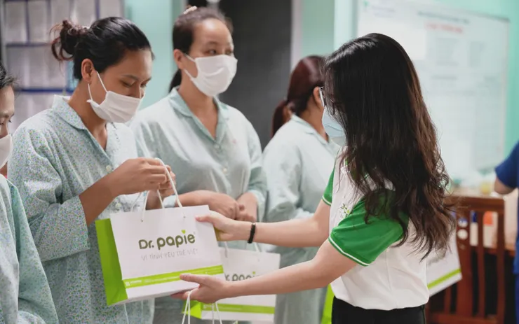 Hỗ trợ trực tiếp tại bệnh viện: Trong 3 năm, Dr.Papie đã trao hơn 500 phần quà tới các khoa Sơ sinh, bao gồm Gạc răng miệng Dr.Papie, Khăn hạ sốt Dr.Papie, Nước tắm thảo dược Dr.Papie và Tinh dầu tràm Dr.Papie, phù hợp nhu cầu thực tế của trẻ sinh non và các mẹ khó khăn.