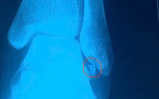 Qua thăm khám và cận lâm sàng, bác sĩ phát hiện mảnh xương vỡ nằm trong khoang khớp - nguyên nhân gây đau và cản trở vận động.