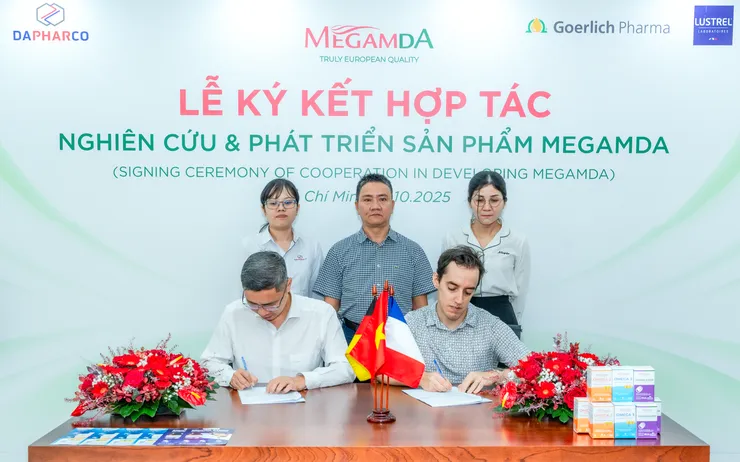 Ngày 17/10/2025, Công ty Cổ phần Dược – Thiết bị y tế Đà Nẵng (Dapharco) đã chính thức ký kết hợp tác nghiên cứu & phát triển các dòng sản phẩm thực phẩm bảo vệ sức khỏe mang thương hiệu Megamda với hai tập đoàn dược phẩm hàng đầu Châu Âu – Goerlich Pharma (Đức) và Lustrel Laboratoires (Pháp).