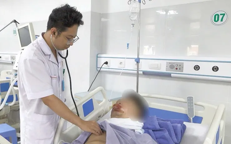 Khi nhập viện, bệnh nhân trong tình trạng đau nhiều, môi và lưỡi sưng phồng, có phỏng nước, khó nuốt và khó thở do phù nề hạ họng. Các bác sĩ chẩn đoán bỏng hô hấp, viêm phù nề họng - hạ họng tiến triển và đã phải đặt nội khí quản, hỗ trợ thở máy để đảm bảo đường thở. Hiện bệnh nhân đang tiếp tục được theo dõi, điều trị tích cực.
