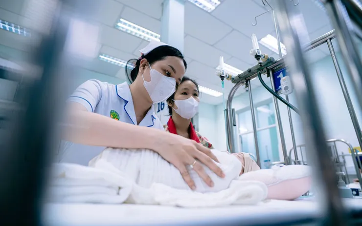 Phụ huynh cần đưa trẻ đến cơ sở y tế ngay khi có các dấu hiệu cảnh báo như: thở nhanh, co kéo hõm ức hoặc cánh mũi phập phồng; thở rít, thở mệt hoặc ngưng thở thoáng qua; bú kém, nôn trớ nhiều; tím tái môi, đầu chi; sốt cao không hạ hoặc trẻ lơ mơ, li bì.