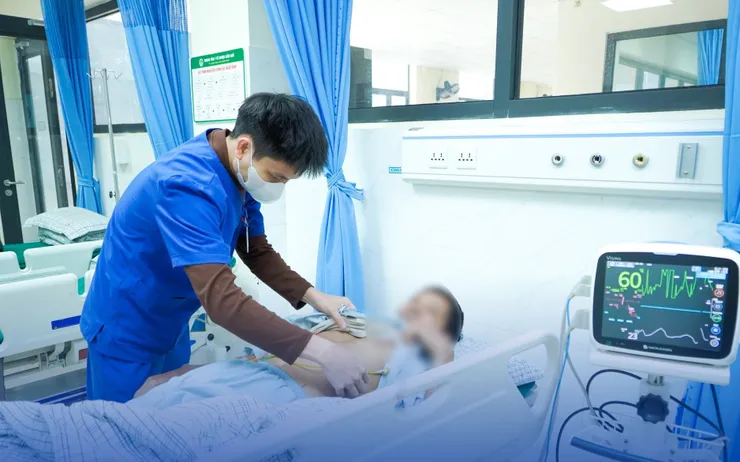 Qua thăm khám ban đầu, các bác sĩ ghi nhận nhịp tim người bệnh lên tới 150 lần/phút, huyết áp 160/90 mmHg và chẩn đoán xác định nhịp nhanh trên thất. Ngay sau đó, người bệnh được theo dõi sát và điều trị tích cực theo phác đồ chuyên môn tại Khoa Cấp cứu - Hồi sức tích cực và Chống độc.