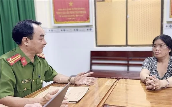 Đối tượng Nguyễn Thị Kiều Phương khai nhận tại cơ quan Công an. Ảnh: TTXVN phát