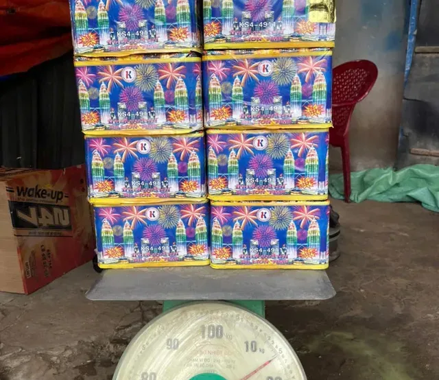 Tiến hành khám xét nhà của 2 đối tượng, công an thu giữ thêm 8 hộp pháo có trọng lượng 12,3 kg.